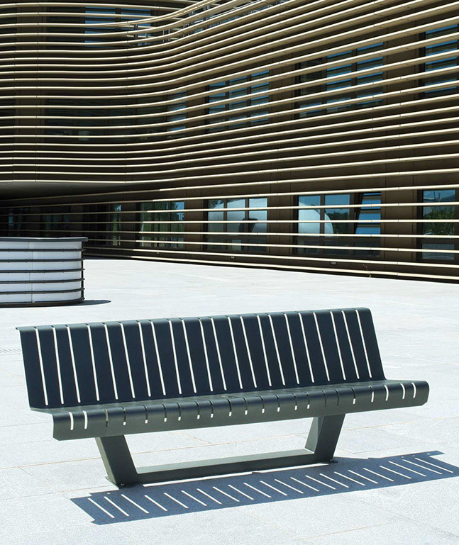 La ligne LIA est composée de corbeilles, cendrier, banc, fauteuil, banquette et barrières.