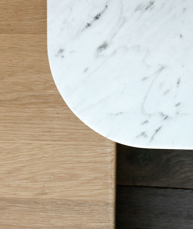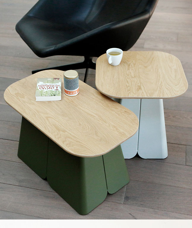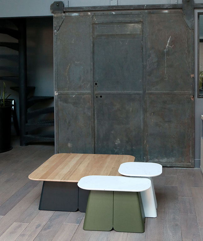 Ligne constituée de tables basses et d'appoint offrant une liberté de composition et d'assortiment de couleur et de matière.