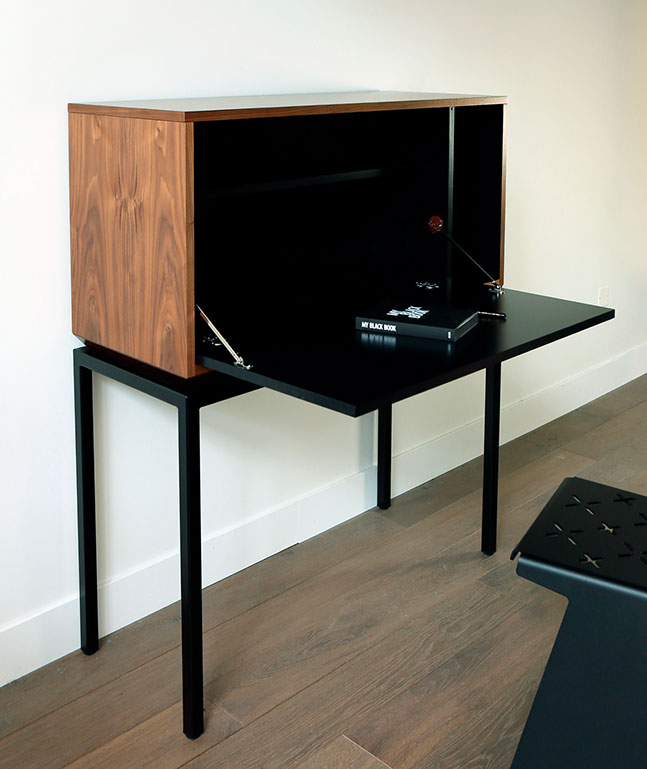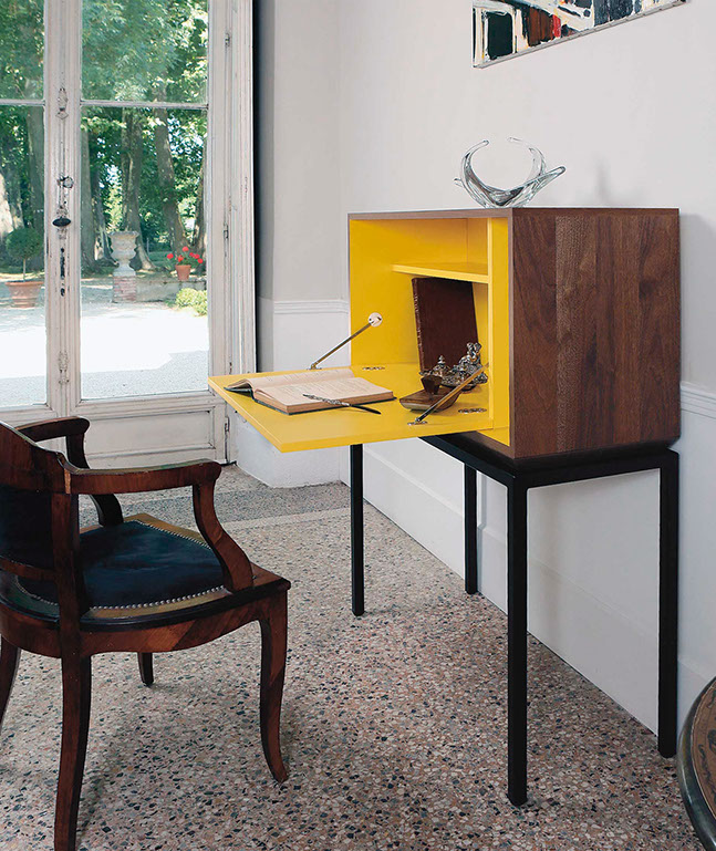 Imaginés comme un petit espace personnel, les secrétaires MyCity jouent sur le mariage du bois, noyer ou chêne et de la couleur en donnant à chacun sa force.