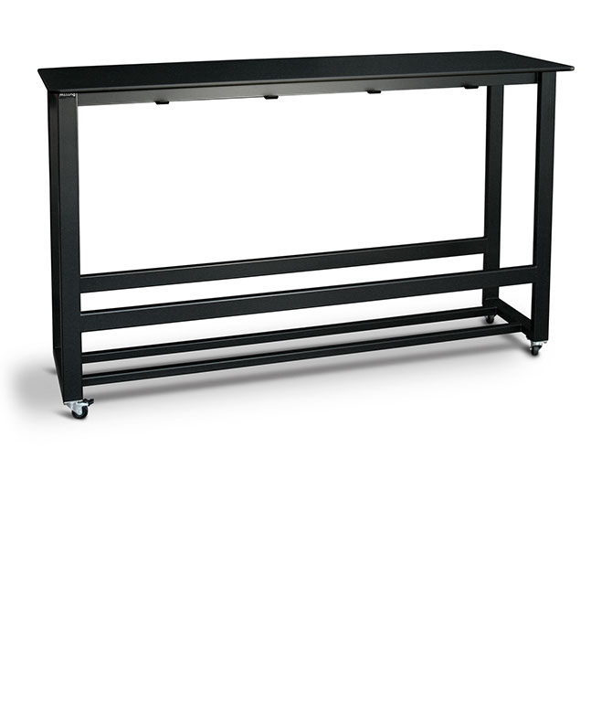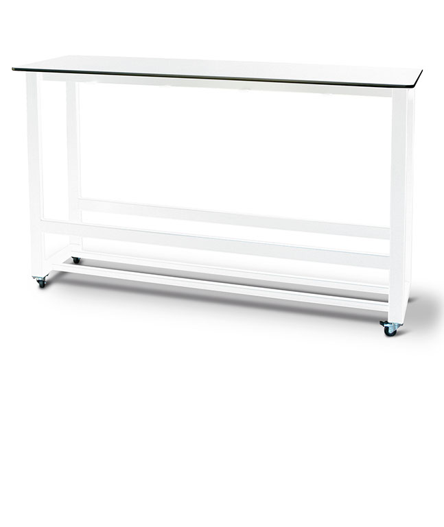 Table mobile montée sur 4 roulettes avec freins, pour intérieur et extérieur.