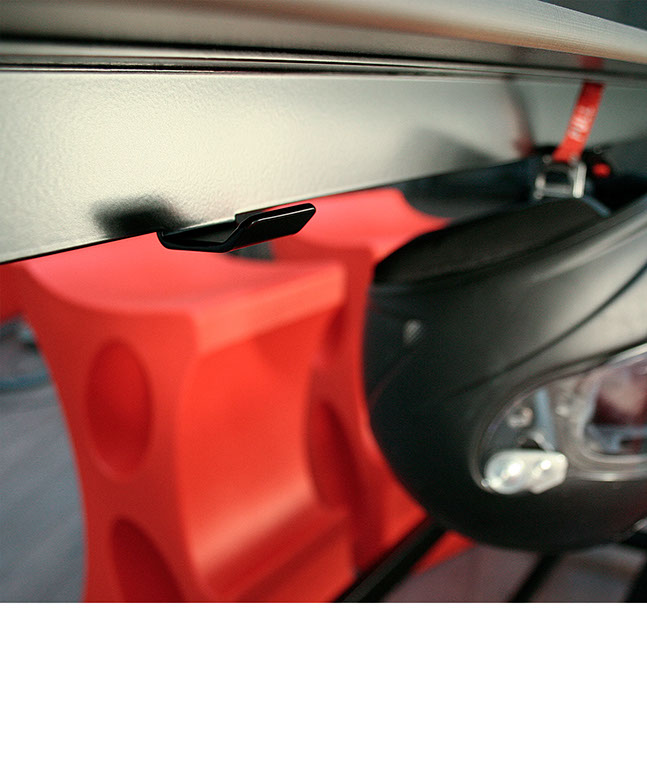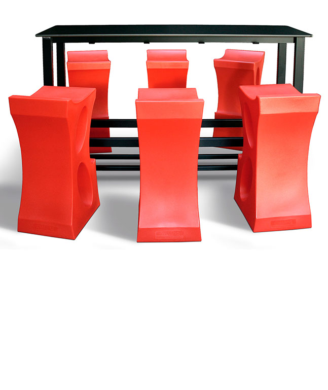 Permet le rangement de 4 tabourets EXTRU, 8 crochets sous plateau pour sacs, vêtements et casques.