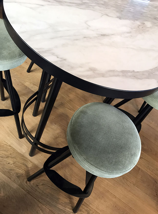 Création de l'identité visuelle, design d'intérieur avec création de mobiliers spécifiques.