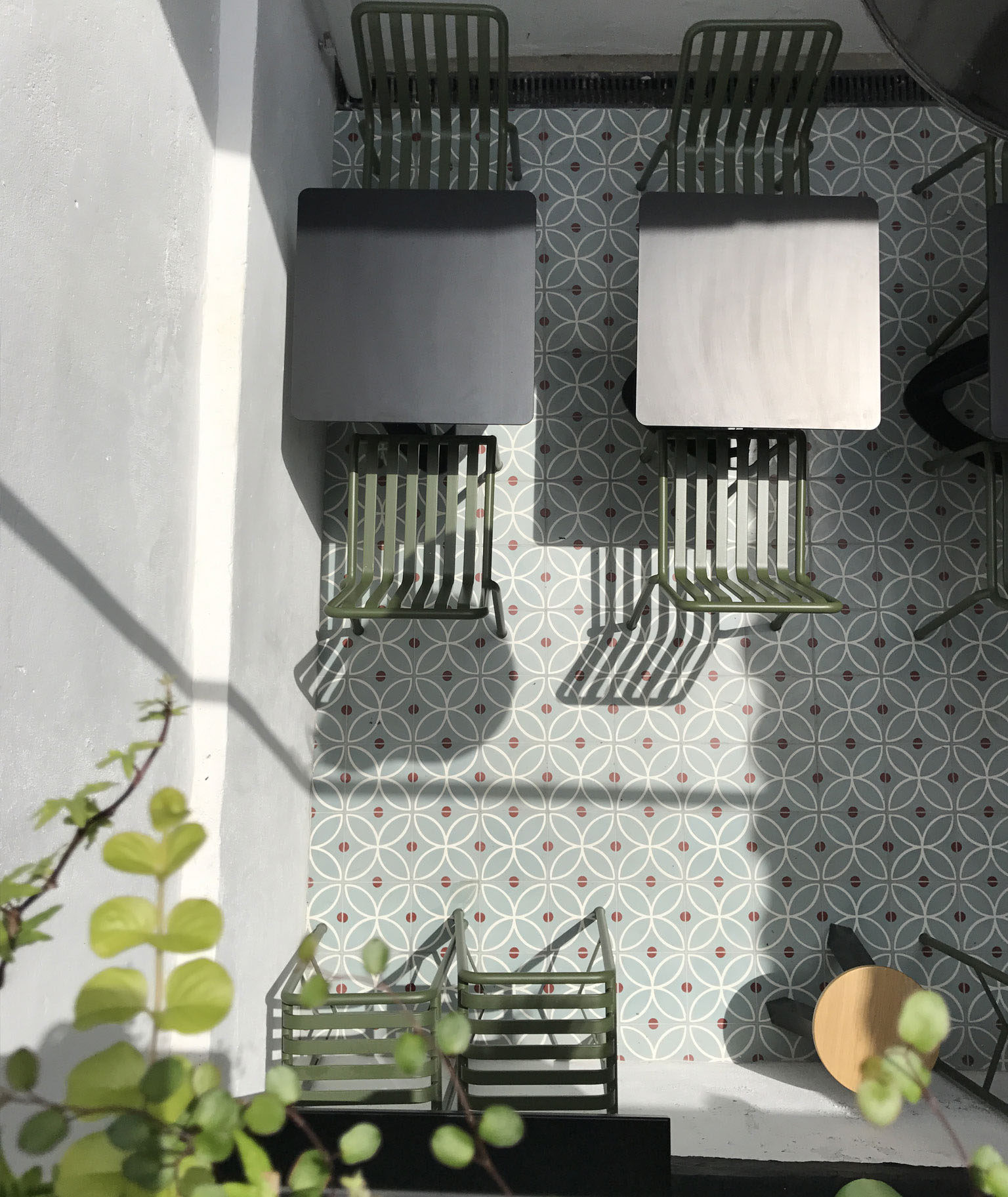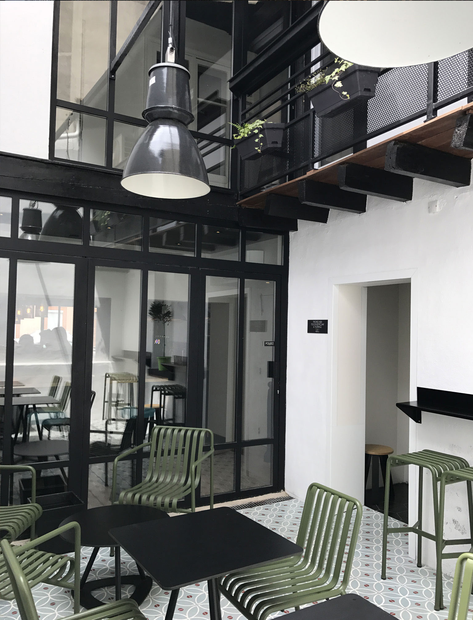 design d'intérieur et extérieur avec création de mobiliers spécifiques, identité visuelle.