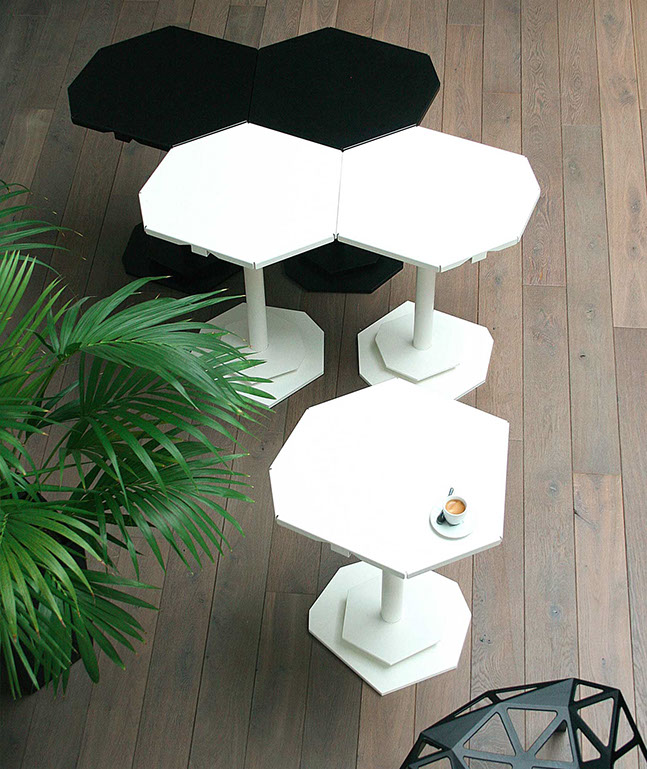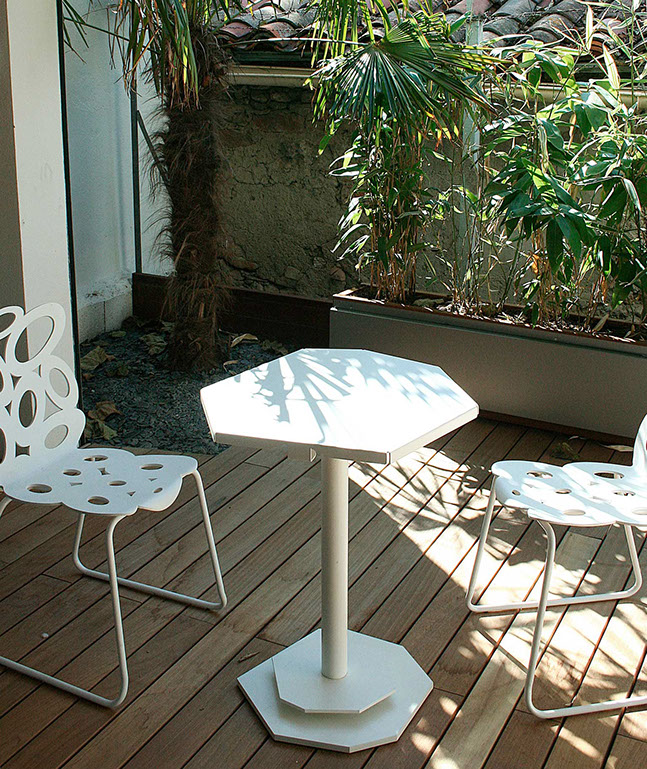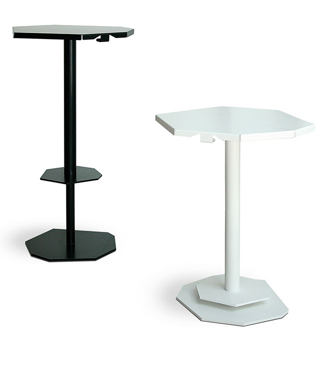 Table ajustable en 2 hauteurs pour intérieur et extérieur.