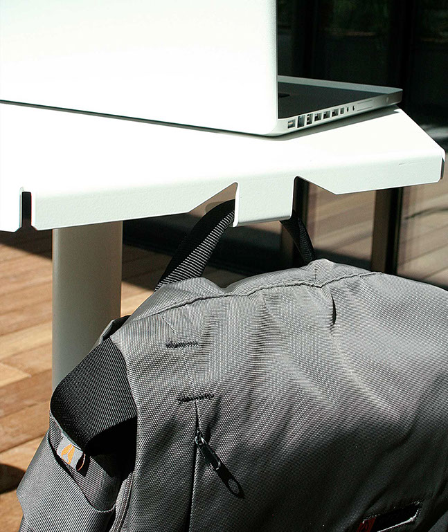 3 crochets sous plateau pour vêtements, sacs et casques.