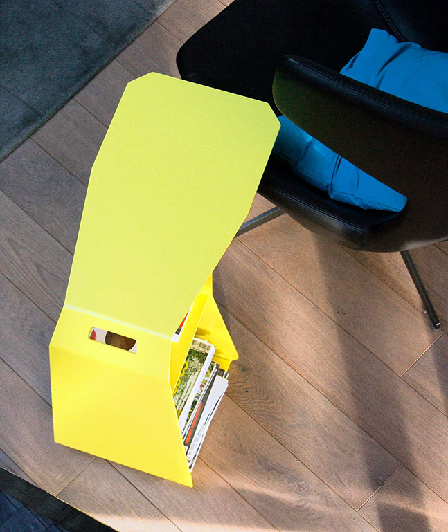 Table d’appoint avec étagère et embase porte-revues pour intérieur et extérieur.